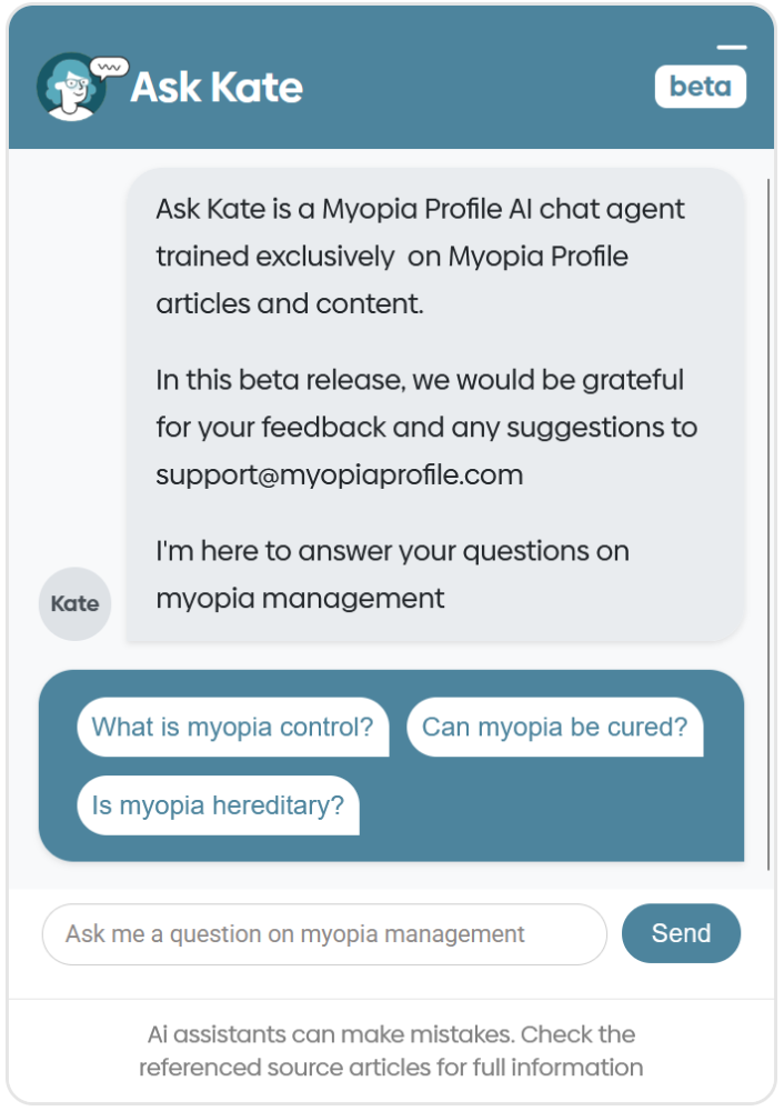 To learn more about Ask Kate or to register interest for access, visit portal.myopiaprofile.com/ask-kate-invite.